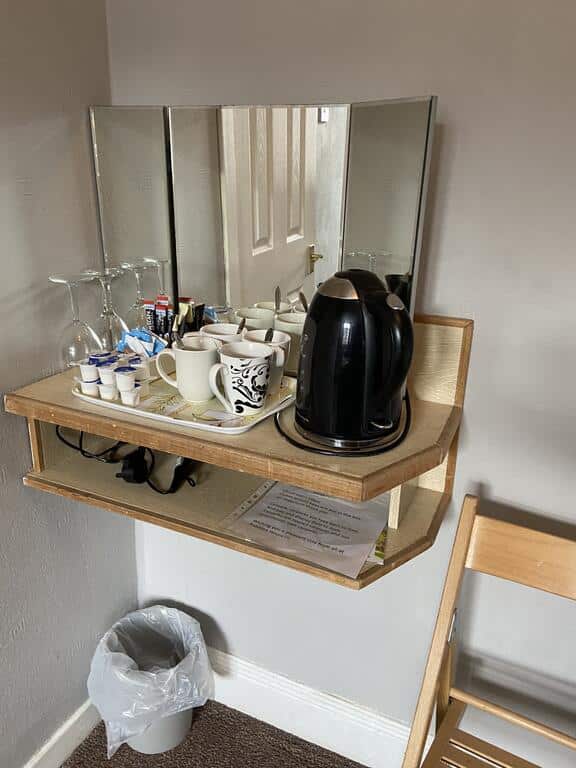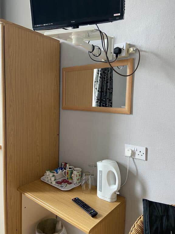 There is a TV with satellite channels and tea and coffee facilities.